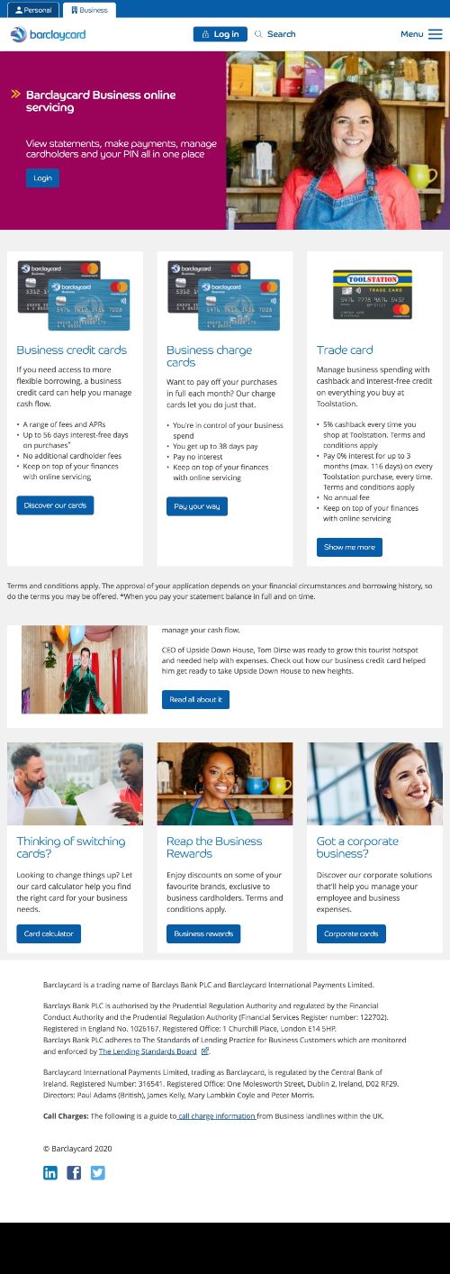 I was hired to oversee a complete re-write of the Barclaycard Business website. Much of it I wrote myself, but I also employed a team of copywriters and was Creative Director on all the work.