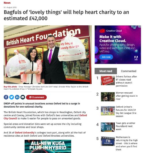 This campaign was designed to increase donations to BHF shops, by encouraging people to bring us their "lovely things" rather than throwing them away. It was my favourite of all the campaigns I worked on for BHF.