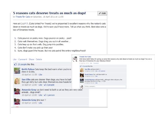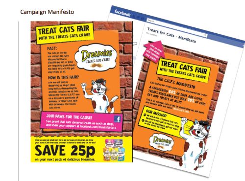 Over 80% of dog owners give treats to their pets. But only 40% of cats receive regular treats. So we created a social media campaign that encouraged the nation’s cat owners to TREAT CATS FAIR! The Facebook page got over 60,000 likes and 2 million leaflets and samples were distributed in shopping centres around the country. The campaign is now 8 years old and people are still posting pictures and videos of their cats with the product.